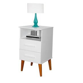A Mesa de Cabeceira Rubi é ideal para deixar seu ambiente aconchegante e estiloso, possui design moderno e funcional! Fabricado em MDP/MDF 12mm e pintura UV, Nicho, 2 gavetas e Pés retrô em madeira maciça com sapata protetora. Produto prático e moderno atendendo exatamente suas necessidades!!!