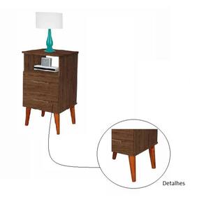 Criado Mesa De Cabeceira Retrô Com 2 Gavetas e Nicho Rubi