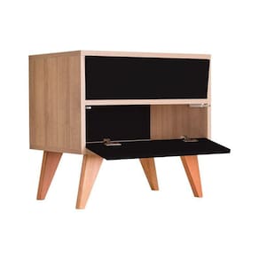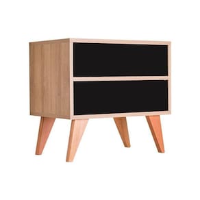 Mesa de Cabeceira Retrô Modelo Bréscia na cor Carvalho Treviso (Madeira Clara) e portas Preto traz organização com estilo para o seu quarto. Possui lindos pés torneados em diagonal.