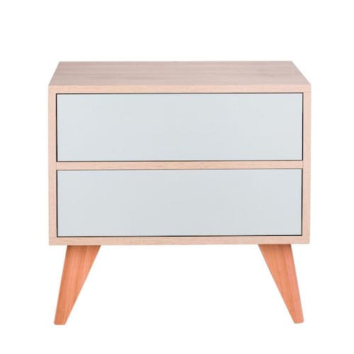 Mesa de Cabeceira Retrô Modelo Bréscia na cor Carvalho Treviso (Madeira Clara) e portas Verde Menta traz organização com estilo para o seu quarto. Possui lindos pés torneados em diagonal.