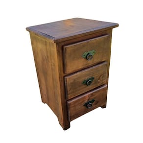 Mesa de Cabeceira Rústica de Madeira com 3 Gavetas 60cm de Altura