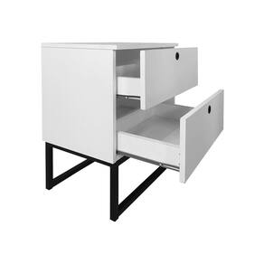 Mesa de Cabeceira Slim 2 Gavetas Branco Base Metálica Preta - Vallisa Decor A Mesa de Cabeceira é um elemento indispensável para complementar o espaço ao lado da cama, oferecendo praticidade e elegância. Com espaço para itens essenciais como livros, óculos ou uma luminária, ele proporciona organização e conforto ao seu ambiente de descanso. Além disso, sua superfície é perfeita para decorar com objetos que expressem sua personalidade, adicionando um toque especial ao seu quarto. Dimensões: - Altura: 61cm; - Largura: 50cm; - Profundidade: 34,5cm; - Altura Base: 20,5cm; - Largura Base: 48cm; Medidas da Gaveta: - Altura Gaveta Interna: 15cm; - Largura Gaveta Interna: 41cm; - Profundidade Gaveta Interna: 32cm; Especificação do Produto: - Material: MDP BP; - Revestimento: Melanima BP; - Cor: Branco; - Pés: Aço Carbono 20x20 (Pintura Eletroestática); - Gaveta: 2 (Com puxador vazado); Necessita Montagem: Sim (acompanha manual). O produto é enviado desmontado, porém é de montagem fácil, os parafusos acompanham o produto e você vai precisar de uma parafusadeira; - Garantia: 3 meses contra defeitos de fabricação. Você irá receber: 01 volume. Observações Relevantes: - Instruções de Limpeza: Utilizar um pano limpo e levemente úmido, não utilizar produtos abrasivos, álcool ou qualquer outro produto químico; - Todos os produtos vão embalados com total segurança; - Produto para uso residencial em ambiente interno, não devendo ficar exposto diretamente ao sol, calor e umidades excessivas, não devendo ficar em área externa; - Pode haver alguma diferença de tonalidade entre a imagem e o produto real, por conta do tratamento de imagens e a calibração de cores do seu monitor; - Confira as dimensões do produto no momento da compra e certifique-se de que passará normalmente por escadas, elevadores, portas e corredores; - As imagens são meramente ilustrativas, não acompanham objetos de decoração; - Não nos responsabilizamos no ato da entrega por subir escadas/elevadores, montagens, desmontagens, instalações de produtos; - As orientações acima, evita-se futuros desagrados ou imprevistos com a entrega do produto; - Caso ocorra despesas adicionais, serão de responsabilidade do cliente.