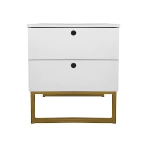 Mesa de Cabeceira Slim Branco 2 Gavetas Base Metálica Dourada - Vallisa Decor