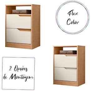 Mesa de Cabeceira Sole com 2 Gavetas e Nicho - Bege