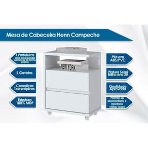 Todas as informações divulgadas são de responsabilidade exclusiva do fabricante/fornecedor. Tipo de Estrutura do Móvel: MDP | Quantidade de Gavetas: 2 Gavetas | Quantidade de Prateleiras: 1 Prateleira | Certificação de Qualidade de Móveis: Qualidade Aprovada | Garantia: 3 meses | Tipo de Pintura: UV | Diferenciais da Gaveta: c/ Corrediças Metálicas | Quantidade de mesas de cabeceira: 0 | Garantia de Fábrica: Garantia de Fábrica | Com rodas: Não | Cor Principal: Branco | Com gavetas: Sim | Com portas: Sim | Com prateleiras: Sim | É kit: Não | Requer montagem: Sim | Com Corrediças: Não | Fonte do produto: N/A | Acabamento: Galvanizado | Material das corrediças: Metal | Tipo da mesa de cabeceira: Com pés | Material do cabo: Plástico | Material de dobradiças: Metal | Com bandeja removível: Não | Inclui ferramentas de montagem: Sim | Material da mesa de cabeceira: Melamina | Condição do item: Novo | Produto: N/A | Quantidade de gavetas: 0 | Quantidade de Portas: 0 | Código universal de produto (GTIN): 7890022997838 | Condição do Item: Novo | Link Site: https://www.costaricacolchoes.com.br/produtos.asp?produto=27965 | Numeral: 0 | Não se Aplica: N/A | Não Possui: Não | Linha/Modelo: HENN | Cor Cnova: Blush | Cor Meli: Branco | Contatos Sac Fábrica: www.henn.com.br | Categoria Trilha: Móveis de Quarto> Mesa Cabeceira | Categoria - Sub: Mesa Cabeceira | Categoria - Pai: Móveis de Quarto | Comprimento Embalagem: 48.50 | Largura Embalagem: 64.50 | Altura Embalagem: 39.00 | Peso: 18.00 Kg | Kit: 0 | Peso Real Kg: 18.00 | Peso Cubado: 10.00 | Volumes: 1 | M3: 0.04 | Comprimento/Profundidade: 39 cm | Largura: 48 cm | Altura: 64 cm | Tamanho Montado: Larg:48.50 x Comp/Prof:39.00 x Alt: 64.50 | Comprimento/Profundidade Montado: 39.00 | Largura Montado: 48.50 | Altura Montado: 64.50 | Cor Fabricante: Off White | Data Cadastro: 2023-8-1 4:13:52 | Sigla Estoque: 12 | Marca: HENN