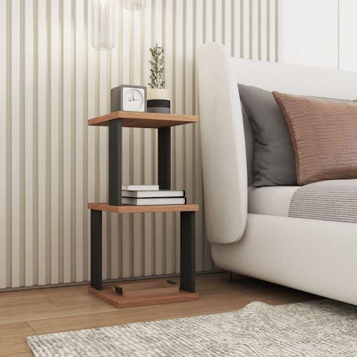 Mesa de Cabeceira Spin360 Preto/Freijó