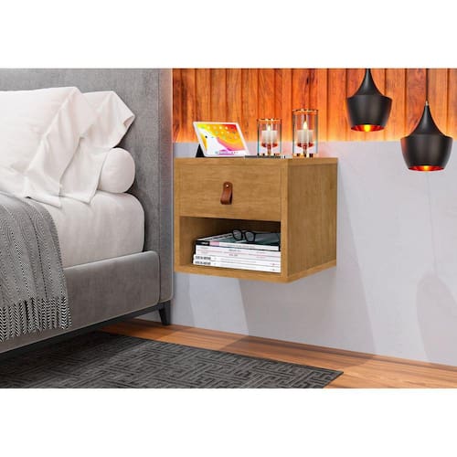 A Mesa de Cabeceira suspensa Julia é uma solução prática para você deixar o seu quarto mais bonito e complementar seu ambiente. Produzida em MDP com acabamento UV, possui 1 gaveta com amplo espaço interno e corrediças metálicas que proporcionam mais leveza no manuseio. Ainda, acompanha kit para ser montada de forma suspensa, conforme a altura que você quiser do chão. Acabamento da Gaveta: Pintura UV Ambiente Principal: Quarto Complexidade da Montagem: Alta: deve ser montado por um montador especializado Cor: Marrom Cor do Produto: Marrom Escala de Brilho: Fosco Gaveta com Chave: Não Itens Inclusos: 1 Mesa de cabeceira e 1 manual de montagem Manual de Montagem e Instalação: https://cdn2.madeiramadeira.com.br/atributo/j-a-moveis/1472844-mesa-de-cabeceira-jUlia-suspensa.pdf Material da Gaveta: MDP Material Principal: MDP Necessita Montagem: Sim Origem do Produto: Nacional Peso: 5,8 kg Peso Máximo por Gaveta: 7 kg Pet Friendly: Não Possui Espelho: Não Possui Possui Nichos: 01 Possui Pés: Suspenso Possui Portas: Não Possui Prateleiras: Não Recomendações de Uso, Manutenção e Limpeza: Limpar com pano seco, manter em lugar livre de umidade, ao abrigo de exposição direta ao sol. Sapatas Niveladoras: Não Sistema de Montagem: Tampa, Pregos, Parafusos Suporta Até (kg): 15 kg Tipo de Corrediça da Gaveta: Metálica Simples Tipo de Puxador da Gaveta: Externo Ean: 7909903391945