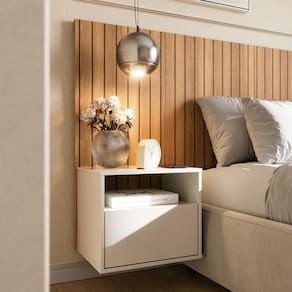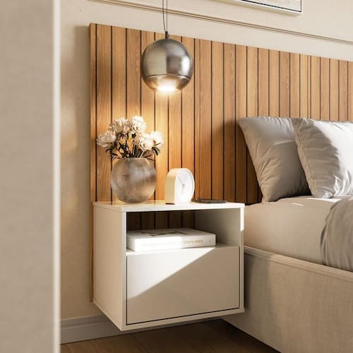 Mesa de Cabeceira Suspensa com Efeito Ripado Cross Freijó - Movelove
