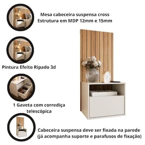 Cabeceira suspensa deve ser fixada na parede (já acompanha suporte e parafusos de fixação)