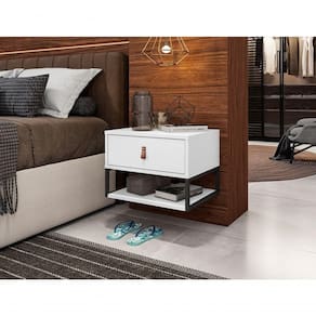 Mesa De Cabeceira Suspensa Hampton Branco A Mesa de Cabeceira é perfeita para o seu quarto, deixando o ambiente mais bonito, sofisticado e aconchegante. É suspensa e possui pintura com acabamento Semi-Fosco para melhorar seu design. Dimensões do produto: