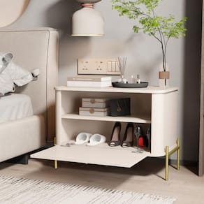 Divisória para colocar calçados além de pés e puxador em metal com design exclusivo;