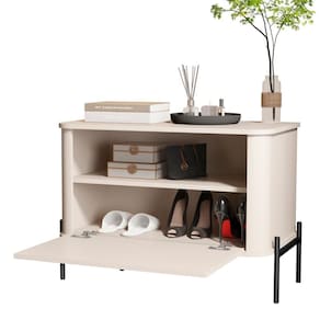Divisória para colocar calçados além de pés e puxador em metal com design exclusivo;
