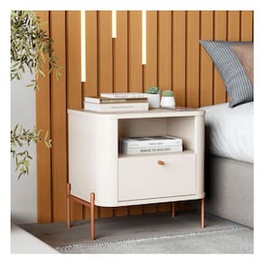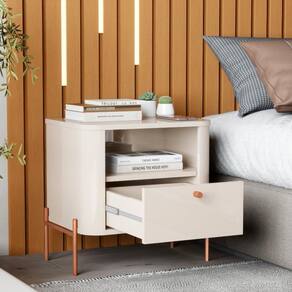 Mesa de Cabeceira Tucupí Slim Off White Bronze JB Bechara