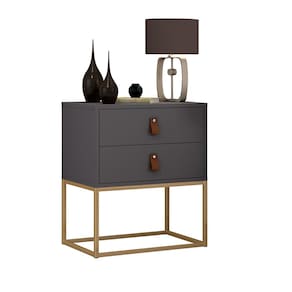 Mesa De Cabeceira Unic 45 Cinza Base Metalica Dourada