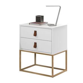 Mesa De Cabeceira Unic 45 Moderno Base Metalica Dourada - Branco