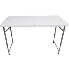Uma mesa super prática e fácil de montar e desmontar em qualquer lugar, sendo facilmente transportada no carro ou até mesmo a pé. Mesa com tampo em plástico super resistente e estrutura em aço com pintura eletrostática. Possui duas alturas podendo ser usada em vários ambientes ou ocasiões conforme a necessidade para o uso, super versátil e prática, resistente e alta durabilidade, sendo um ótimo investimento de custo-benefício.