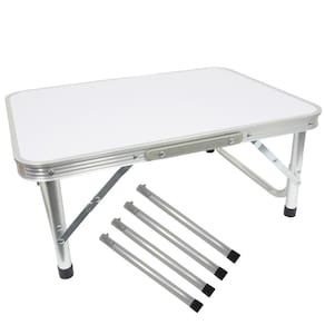 Uma mesa super prática e fácil de montar e desmontar em qualquer lugar, sendo facilmente transportada no Carro ou até mesmo a pé, pesando apenas 2,5 Kg. Mesa em cor Branco e Cinza mesclado na tampa e estrutura em Alumínio, com duas alturas podendo ser usada em vários ambientes ou ocasiões conforme a necessidade para o uso, super versátil e prática, resistente e alta durabilidade, sendo um ótimo investimento de custo-benefício.