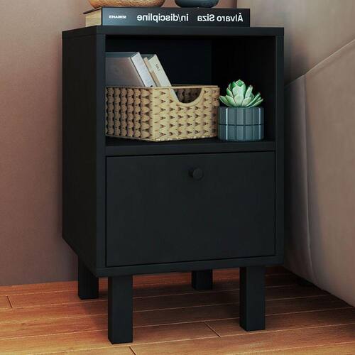 O(a) Mesa de Canto 1 Porta Basculante Preto 739 - Pnr Móveis é produzido em MDP na escala de brilho Fosco, e possui um grau de dificuldade de montagem: Médio.
