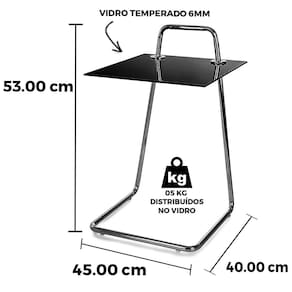 Minimalista, funcional e elegante, a Mesa de Canto ANM0111M Tampo de Vidro Quadrado Preto Base de Aço é a escolha perfeita para quem busca praticidade com um toque moderno. O Mesa de Canto ANM0111M Tampo de Vidro Quadrado Preto Base de Aço com o seu tampo em vidro temperado de 6mm oferece segurança e leveza visual, enquanto a estrutura cromada adiciona brilho e sofisticação ao ambiente. Com medidas compactas de 45x40x53 cm, ela se encaixa perfeitamente em salas, quartos, escritórios ou varandas. Ideal como apoio para vasos, luminárias, livros ou objetos decorativos, é uma peça coringa para quem valoriza design inteligente.