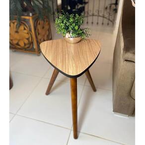 Mesa de canto, tampo em mdf 18mm laminado visual de madeira cumaru. O corte é feito a laser com alta precisão e acabamento impecável. Os 3 pés palitos são produzidos em madeira. Esta é uma linda peça para deixar seu ambiente mais elegante, organizado e aconchegante. Somente ambientes internos.