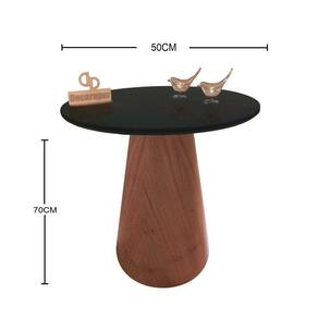 Mesa De Canto Cone Amadeirado Com Tampo Vidro 50cm Preto 70cm