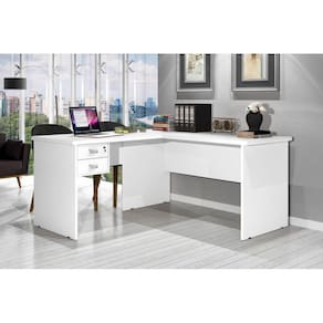 A Escrivaninha em L Taurus é um móvel com design funcional e inovador, pode ser utilizado para seu espaço de estudos e trabalho. Produzido em MDP, com encabeçamento de 30 mm no tampo, 2 gavetas sendo uma com fechadura ,acabamento em pintura UV de alto brilho fazem desta estação de trabalho uma combinação perfeita de durabilidade, resistência e bom gosto. Seu design em " L " ,deixa o produto com amplo espaço, de forma que você possa organizar suas múltiplas tarefas de maneira prática e confortável, fazendo com que o ambiente se torne agradável e de alto rendimento.