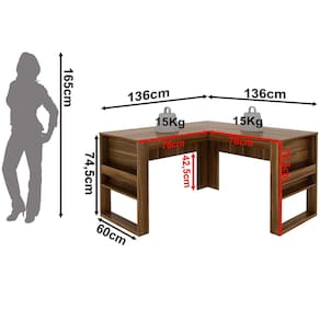 Dimensões da Mesa de Canto para Escritório em L Angular Detalhe Ripado: