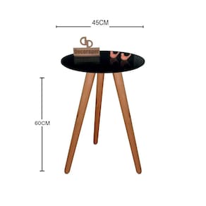 Mesa De Canto Pés Palito Amadeirado Com Tampo Vidro 45cm Preto 60cm