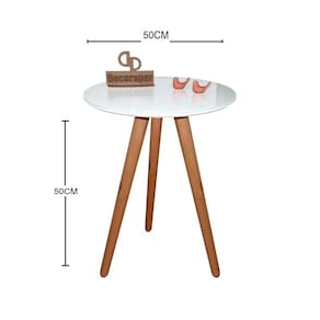 Mesa De Canto Pés Palito Amadeirado Com Tampo Vidro 50cm Branco 50cm