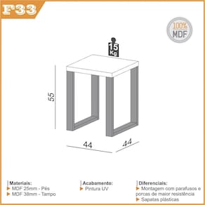 Itens Inclusos: 1 Mesa de Canto (F33)