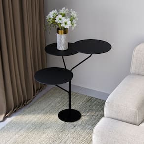 Serve para apoiar objetos decorativos, como vasos, luminárias, quadros ou porta-retratos.