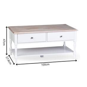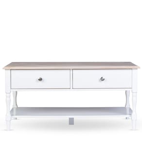 A mesa de centro combina elegância clássica e funcionalidade para complementar sua sala de estar com charme e praticidade. Com tampo em madeira maciça, que traz um toque acolhedor e sofisticado, e estrutura em acabamento branco, o design remete ao estilo tradicional com leveza e delicadeza. Possui duas gavetas espaçosas, além de uma prateleira inferior que amplia o espaço de organização. É ideal para compor ambientes aconchegantes e elegantes. Uma peça versátil, que harmoniza facilmente com diferentes estilos de decoração.