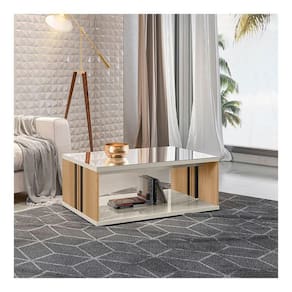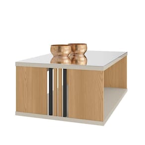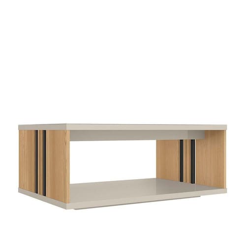 Mesa De Centro Bonito Com Espelho E Haste De Mdf Revestida Linea Brasil Carvalho/off White