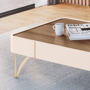 Mesa de Centro Cadenza Off White Castanho - HB Móveis