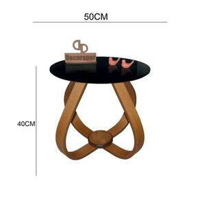Mesa De Centro Cebola Com Vidro 50cm Preto 40cm