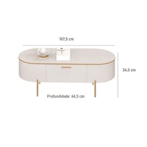 Apresentamos a Mesa de Centro Celena 107 cm da Dj Moveis, e o complemento ideal para compor a sua sala de estar. Possui um design moderno e sofisticado, a bancada conta com laterais curvas, tampo usinado com cantos curvos acompanhando as laterais, trazendo as mais atuais tendencias de design, adornado por uma pintura PU dourado. Com uma gaveta com corredica telescopica e puxador metalico na cor dourada, voce tera espaco para guardar seus objetos e utilidades domesticas organizadamente, e um movel pratico e funcional. Produzida com materia-prima de qualidade, sua estrutura e reforcada com pes metalicos cilindricos tambem na cor dourada, criando uma composicao harmonica com os outros elementos do produto e seguindo as mais atuais tendencias de decoracao, alem de facilitar a limpeza.