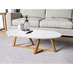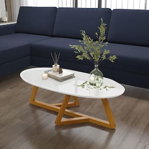 - Pintura semi-brilho, tampo chanfrado no formato oval em MDF 15 mm