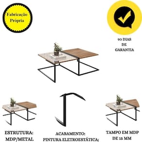 MDP/MetalO Kit Mesa Lateral e Apoio Estilo Industrial Aurora é perfeito para você que está à procura de um produto extremamente requintado e que também pode ser utilizado em diversos ambientes, além de lindo é muito versátil. Desenvolvido pra atender você que busca um conceito diferente no que se refere a design, sem abrir mão da qualidade. Possui duas mesas com tampo em MDP de 15 mm e pés aramados que agregam mais resistência à umidade, riscos, mofo e bactéria. Possui também um acabamento visual que se assemelha aos desenhos de madeiras naturais e pés estruturais em metal antioxidantes com pintura eletroestática.