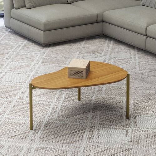 Mesa de Centro em MDF Orgânica TB628 70cm com Pés Metálicos Gold Freijó Dalla Costa - Mesa de Centro em MDF com Pés Metálicos