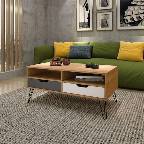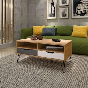 A decoração da sua sala ganhará um ar sofisticado com a Mesa de Centro Estocolmo. Um móvel excelente para quem busca espaço para acomodar enfeites decorativos ou para apoiar bandejas e servir visitas. Produzida com 2 gavetas com corrediças metálicas e com abertura usinadas. Possui pés em metal. Com pintura UV texturizada, sua manutenção fica muito mais fácil. Além disso, o móvel possui tres meses de garantia. A responsabilidade com meio ambiente também é uma das bandeiras da Artely Móveis. Ambiente Principal: Sala de Estar Complexidade da Montagem: Baixa: pode ser montado por uma pessoa sozinha Cor: Carvalho/Grafite Cor do Produto: CARVALHO/GRAFITE Escala de Brilho: Fosco Formato da Mesa: Retangular Itens Inclusos: 1 Mesa de Centro, Kit Ferragem e Manual de Montagem Manual de Montagem e Instalação: https://cdn2.madeiramadeira.com.br/atributo/artely/873994-mesa-de-centro-estocolmo-1-0.pdf Material da Gaveta: MDP Material da Prateleira: MDP Material do Tampo: MDP Material Principal: MDP Necessita Montagem: Sim Origem do Produto: Nacional Peso: 21,1 kg Peso Máximo por Prateleira: 1 kg Possui Espelho: Não Possui Possui Gavetas: 02 Possui Portas: Não Possui Prateleiras: 02 Quantidade de Nichos: 02 Recomendações de Uso, Manutenção e Limpeza: Pano levemente umedecido em agua Sistema de Montagem: Minifix, cavilhas e parafusos Suporta Até (kg): 10 kg Tipo de Corrediça da Gaveta: Metálica Simples