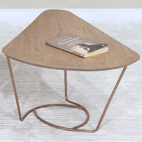 Mesa De Centro Gota Madeira Amêndoa Base Metal Cobre, é um item indispensável na sua decoração, por compor funcionalidade e charme para tornar o seu ambiente muito mais elegante. Estrutura em metal com pintura epóxi e MDF 12 mm revestido em lâmina de madeira natural cinamomo com acabamento fosco. Composta por tampo em MDF com recorte diferenciado em formato gota, produzido em lâmina de madeira natural cinamomo e acabamento fosco, e sua base é reforçada com pés em metal cobre com pintura epóxi. Suporta até 30 Kg distribuídos. Uma peça robusta, arrojada e resistente, que combina facilmente com qualquer tipo de decoração. Este móvel chegará em sua casa separado em 02 volumes.