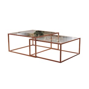 Mesa de Centro Industrial Moderna Atemporal Duo Catarina Cobre e Tampo de Vidro - LARANJA