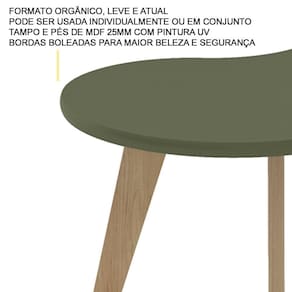 Características adicionais: Produto em MDF; Formato curvo, leve e atual; Tampo e pés de MDF 25mm; Bordas boleadas