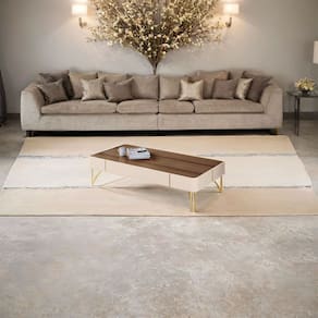 Os pés em aço maciço com acabamento dourado adicionam um toque refinado e garantem resistência e durabilidade. Com estrutura robusta e um visual atemporal, esta mesa de centro é perfeita para compor salas modernas e acolhedoras.