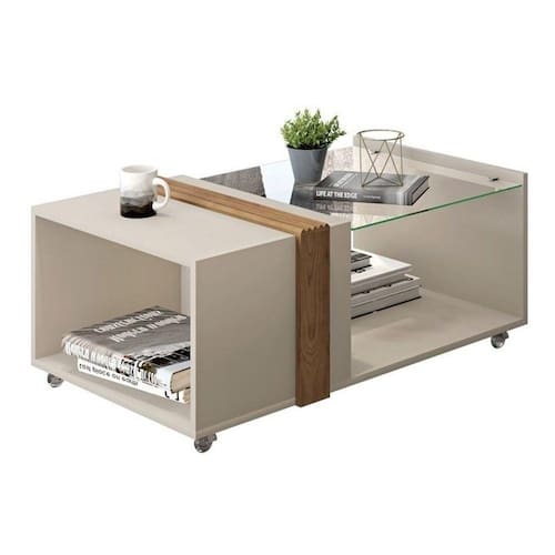 A mesa de centro Núbia é bem-vinda tanto em ambientes empresariais e residências, como recepção e sala de estar. Possui design arrrojado e requintado para abrilhantar o seu ambiente permitindo sobrepor livros, revistas, decoração e muito mais. Composta por tampo com parte em vidro e parte em MDP contendo aplique decorativo em MDF com volumetria. Espaço na parte inferior e nicho lateral. Inclui rodízios de silicone para mais comodidade no dia a dia.