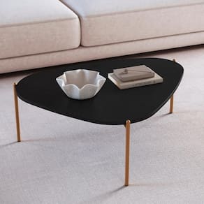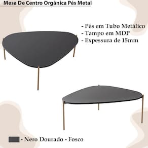 Mesa De Centro Organica Pe Metal 28015 Artesano Nero Dourado