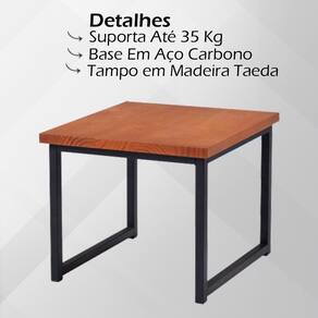 Mesa De Centro Ou Lateral Aço Preto I14 Madeira Taeda, serve para compor vários ambientes sejam eles residenciais ou corporativos. Estrutura em Madeira Taeda e Aço Carbono com pintura em acabamento Epóxi (Fosco). Composto por amplo tampo em Madeira Taeda, possibilitando a disposição de demais objetos, e conta com base em Aço Carbono. Tampo suporta até 35 Kg. Ideal para ficar ao lado do sofá ou no centro da sala de estar, as formas de usar são muitas e ficam por conta da sua criatividade, garante um visual sofisticado e moderno para seu ambiente. Este móvel chegará na sua casa separado em 02 volumes.