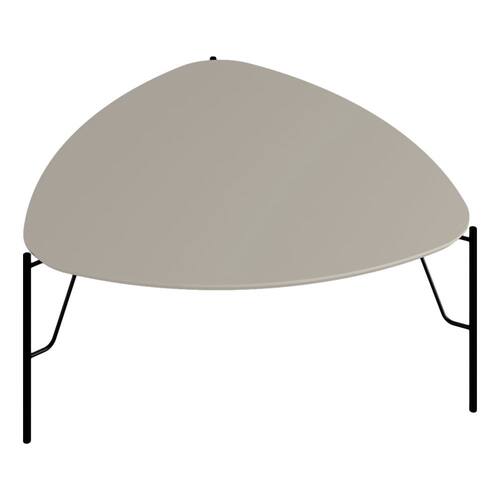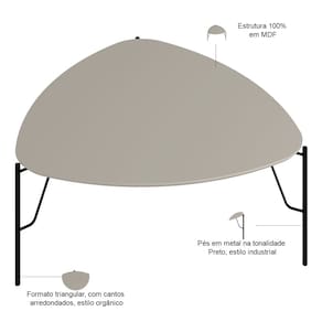 A Mesa de Centro Baixa Alef, da Lyam Decor, reinventa o conceito de móveis para sala de estar e living com seu formato triangular e cantos arredondados, unindo o estilo orgânico ao industrial através de pés metálicos robustos.