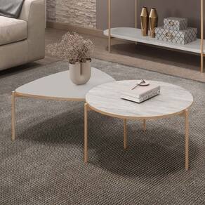 Com um design moderno e sofisticado, a Mesas de Centro Para Sala Pés Metálicos Zira e Nala Bali/Quartzo da Mpozenato traz leveza e elegância ao ambiente.