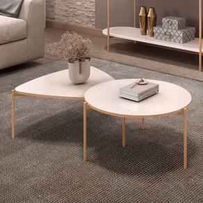 Com um design moderno e sofisticado, a Mesas de Centro Para Sala Pés Metálicos Zira e Nala Off White da Mpozenato traz leveza e elegância ao ambiente.
